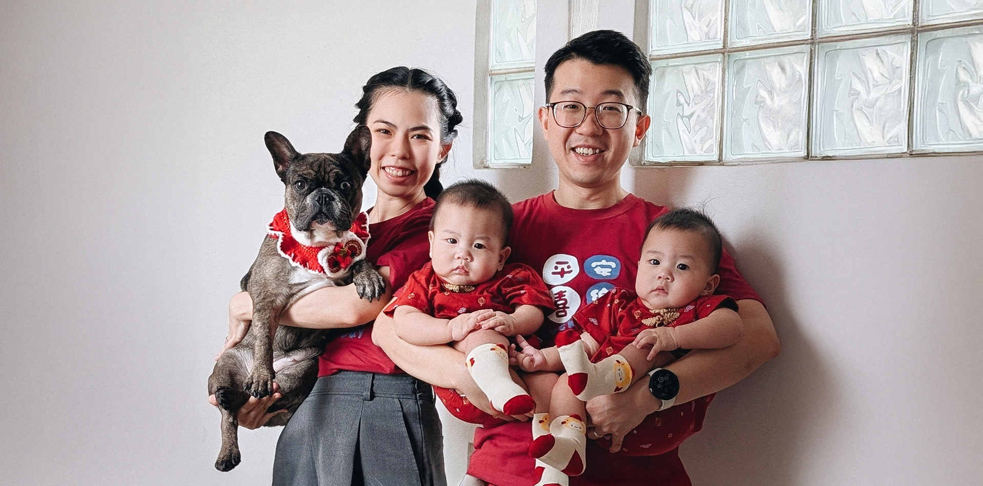 For parents of multiples, the journey from pregnancy to postpartum is filled with unique challenges, joys, and surprises. Sarah Goh (30, Marketing Manager) and Harold Koh (32, Strategic Communications Manager) recently navigated this exact adventure with their twin boys, August and Anders, who are now 15 months old—all while also caring for their 4-year-old Frenchie, Bambii.