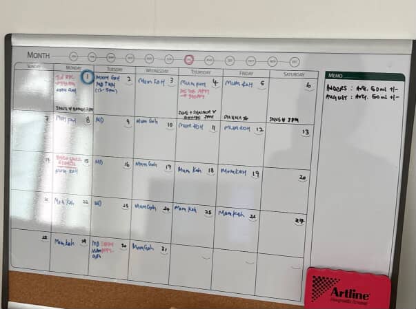 We also keep a whiteboard in the kitchen where I write down reminders and highlight key events for the month. That way, she is mentally prepared and knows what to expect.